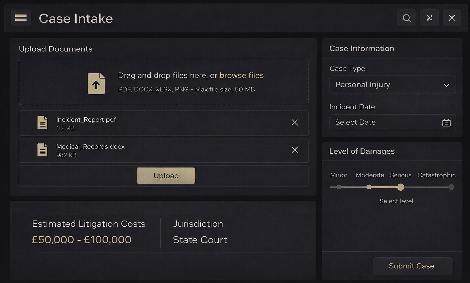 Pre‑qualify cases in minutes, not days.